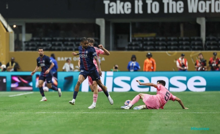 此役上半场,若奥-内维斯完成了梅开二度的好戏,第6分钟大巴黎就得到了梦境开局,半场尾声阶段,布斯克茨造作被断,杜埃造阿维莱斯乌龙,比分差距扩大到3球,而在半场补时终末一刻,阿什拉夫破门,迈阿密海外又又又丢球了,透顶失去了比赛悬念;