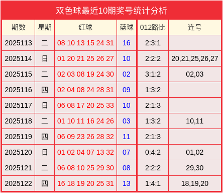 红球1路分析:上期红球1路号码开出4枚奖号。近10期红球1路号码开出24枚。本期1路红球号码算计参考:25。