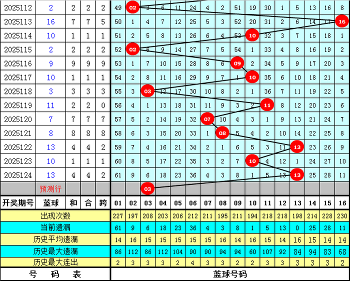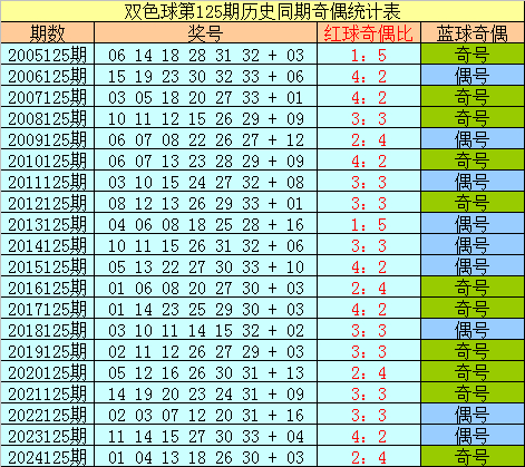 蓝球分析:在第125期历史同时开奖中,蓝球号码奇偶比为11:9,最近5年同时奇偶走势为:奇、奇、偶、偶、奇,本年同时展望再特等数号码,参考蓝球03。