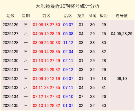 后差异析:近十期后区奖号的大小比为13:7,上一期开出小大数01、07,本期暖热后区开出小大数02、12。